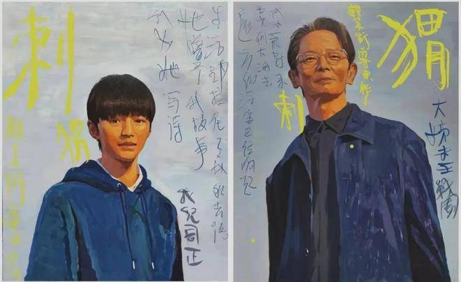 耿樂《刺猬·我兒周正》《刺猬·大姐夫王戰(zhàn)團》,演員王俊凱、演員葛優(yōu),2023年,丙烯畫,80 × 100 cm,鳴謝:藝術(shù)家