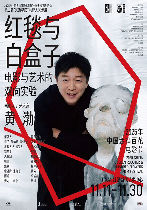 黃渤、徐冰、耿樂、曹斐、楊福東、邱炯炯共域創(chuàng)作,一場把“紅毯”鋪進“白盒子”的實驗近日,作為2025年中國金雞百花電影節(jié)“全年金雞”系列活動的重要組成部分,第二屆“藝海星辰”電影人藝術(shù)展《紅毯與白盒子——電影與藝術(shù)的雙向?qū)嶒灐吩赥CCA紅頂當(dāng)代藝術(shù)中心舉辦。展期從11月11日持續(xù)至11月30日,為今年中國電影120周年獻(xiàn)上一場電影與當(dāng)代藝術(shù)深度交匯的跨界實驗。