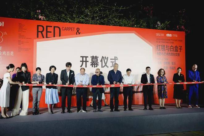 本次展覽策展人、鳳凰衛(wèi)視集團“鳳凰藝術(shù)”總編輯、副總裁、鳳凰中心館長肖戈致辭 開幕剪彩啟動儀式上,張丕民、吳子?xùn)|、尹力、霍廷霄(由黃非代表)、萬順府、余寧、柯碧如、沈萍、鄭小妍、耿樂、肖戈、喬納斯·斯坦普、劉盈希等嘉賓共同登臺,手持金剪,在全場倒數(shù)聲中為展覽剪彩。金色彩帶落下的一刻,標(biāo)志著2025年中國金雞百花電影節(jié)“全年金雞”系列活動——第二屆“藝海星辰”電影人藝術(shù)展《紅毯與白盒子——電影與藝術(shù)的雙向?qū)嶒灐氛絾⒛,現(xiàn)場掌聲經(jīng)久不息。